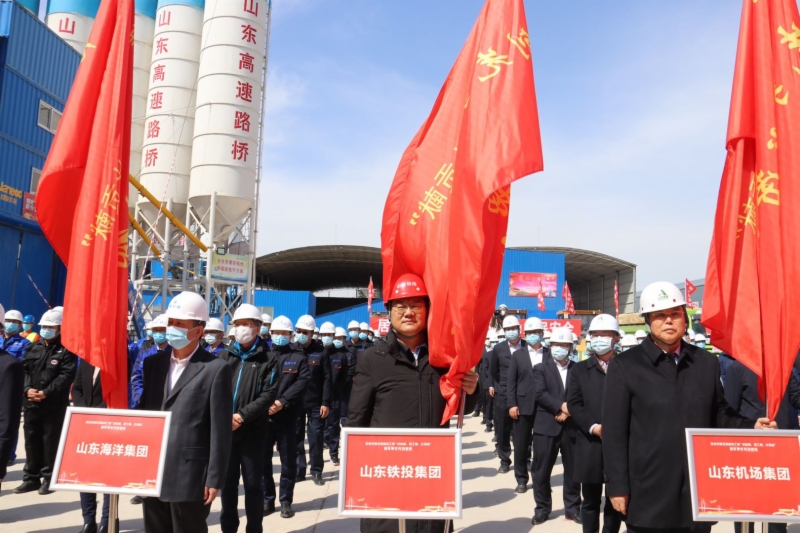 3月28日上午,全省交通运输重点工程“战疫情、保工期、比贡献”创先争优劳动竞赛誓师大会在山东高速集团京台高速德州至齐河段改扩建工程施工现场举行。省委常委、统战部部长、省总工会主席张江汀出席大会并宣布竞赛启动,副省长凌文主持大会。大会向山东铁路投资控股集团、山东高速集团、山东省机场集团、齐鲁交通发展集团等12家省属交通运输重点企业和重点项目负责人授旗,集团党委书记、董事长姜长兴代表集团公司接受授旗。