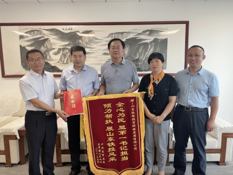 陈茜、李培国代表东平县委、县政府向集团赠送锦旗和感谢信,对集团真情实意关心关爱第一书记工作表示感谢,对第一书记的驻村工作给予充分肯定,并希望集团继续关心支持东平县经济社会发展。姜长兴对陈茜一行的到来表示欢迎,并感谢东平县委、县政府对集团第一书记工作的关心、支持和肯定,表示将借助第一书记工作建立的桥梁作用,积极推动铁投集团和东平县的企地合作,为东平县经济社会发展贡献铁投力量。