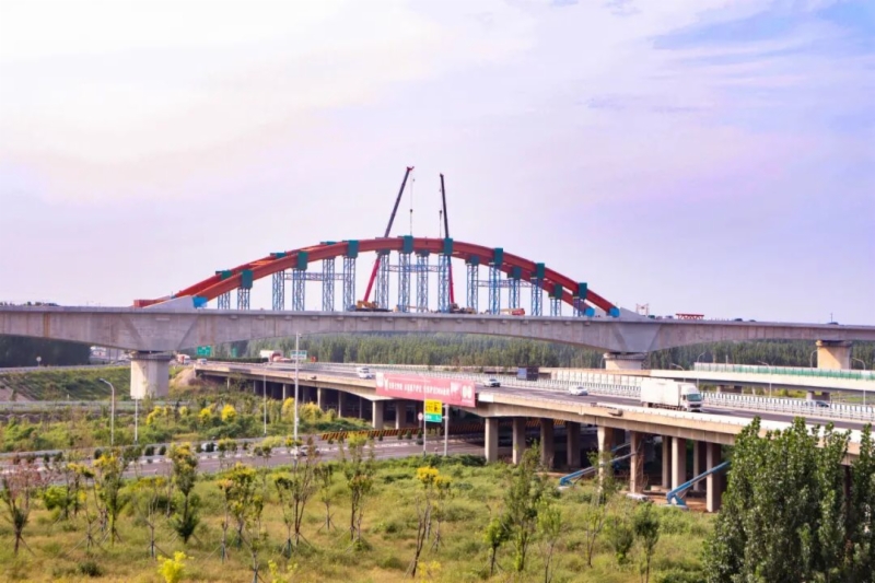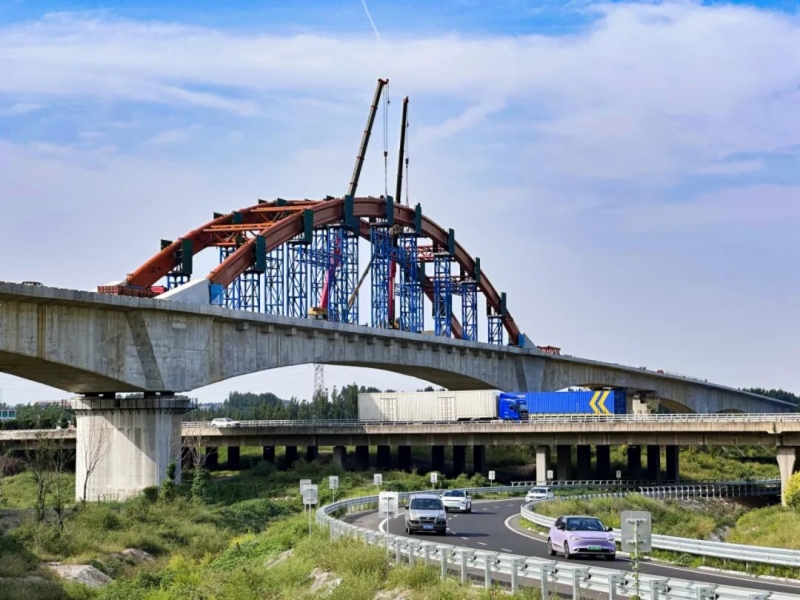 9月10日,济滨高铁济南东特大桥上跨青银高速连续梁钢构拱桥拱肋顺利合龙,标志着济滨高铁全线最大跨度连续梁拱肋安装合龙,为后续架梁与铺轨施工提供了作业通道。