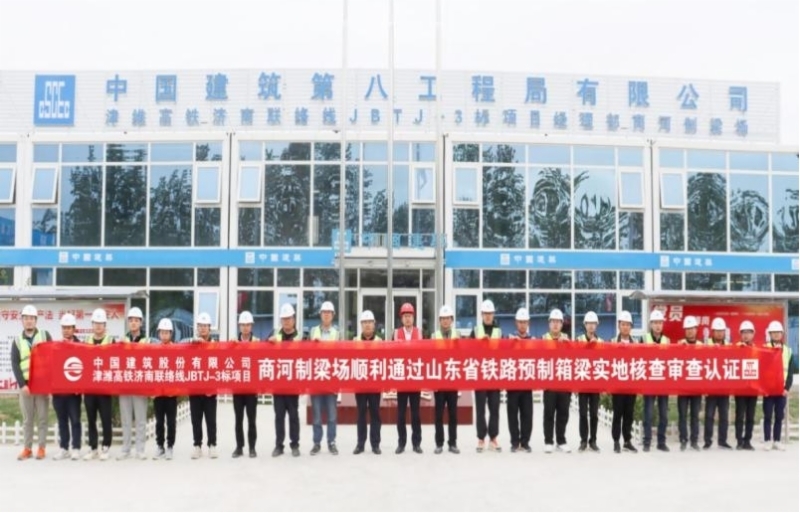 4月20日,济滨高铁(津潍高铁济南联络线)商河、济阳制梁场一次性通过国家生产许可证实地核查,全面完成预应力铁路简支梁生产许可取证工作,中建股份JBTJ-3标项目经理部成为全线首家完成国家级生产许可取证的标段,标志着该梁场正式具备批量生产条件,为后续箱梁供应奠定坚实基础。
