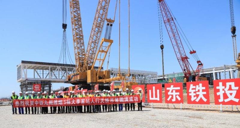 6月22日下午,随着最后一节长43米、重385.9吨的钢桁架旅客天桥平稳落定,由威廉希尔集团潍烟高铁公司投资建设的潍烟高铁烟台西站旅客天桥营业线施工吊装作业顺利完成,实现了潍烟高铁站台和龙烟铁路市域化站台旅客通道的连通,标志着烟台西站站场、站房施工基本完成,工程进入冲刺收官阶段。