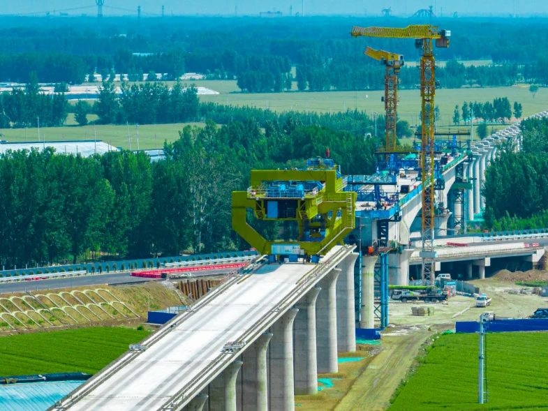 近日,济滨高铁济商1号特大桥跨新建绕城北高速(72+120+72)米连续梁合龙,为下一步桥梁架设和无砟轨道铺设奠定坚实基础。