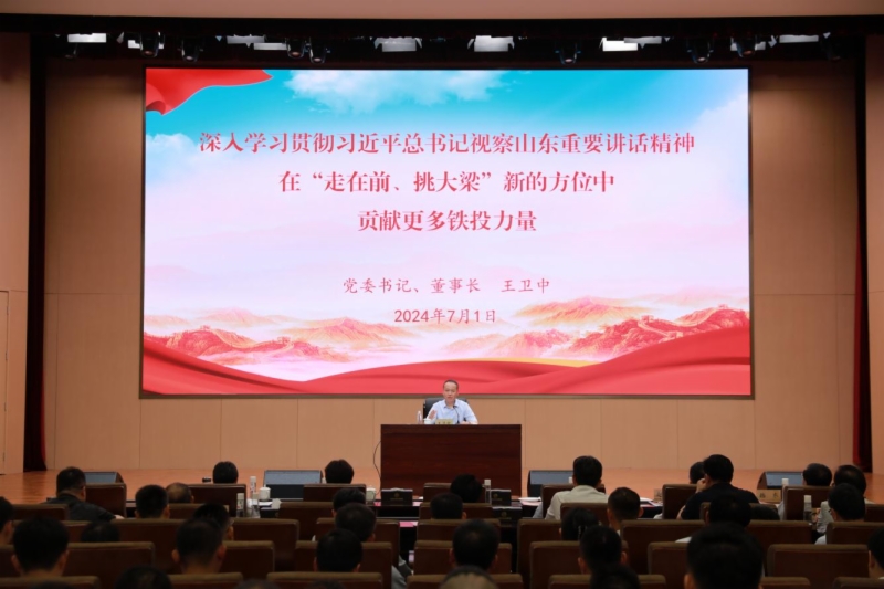 集团党委书记、董事长王卫中强调,要把深入学习贯彻习近平总书记视察山东重要讲话精神作为重大政治任务,与学习贯彻总书记历次视察山东重要讲话和对山东工作的重要指示批示要求结合起来进行系统学习、一体落实。要深刻领会把握总书记对山东发展的总定位、新要求,紧紧围绕“全国一流的铁路事业综合发展集团”愿景,展现铁投担当、彰显铁投地位、提升铁投品牌,以实际行动坚定拥护“两个确立”、坚决做到“两个维护”。